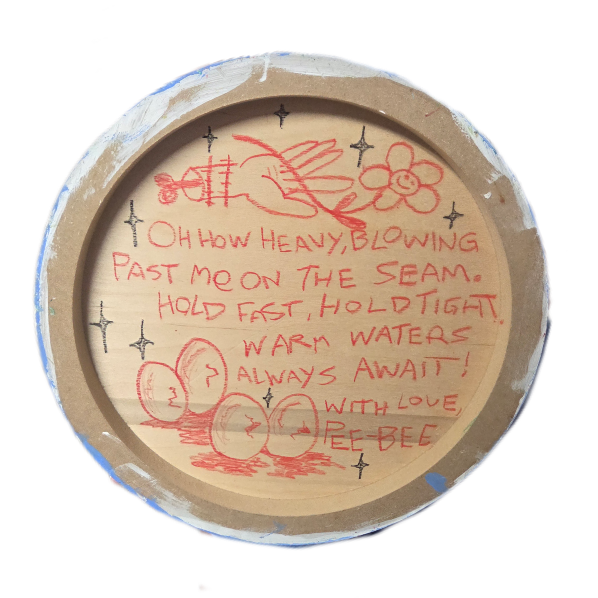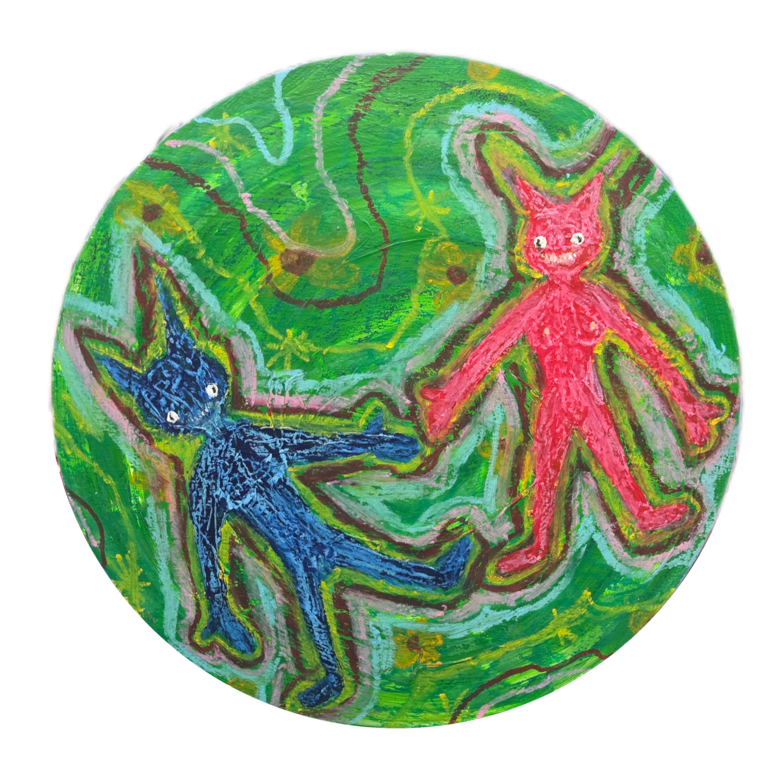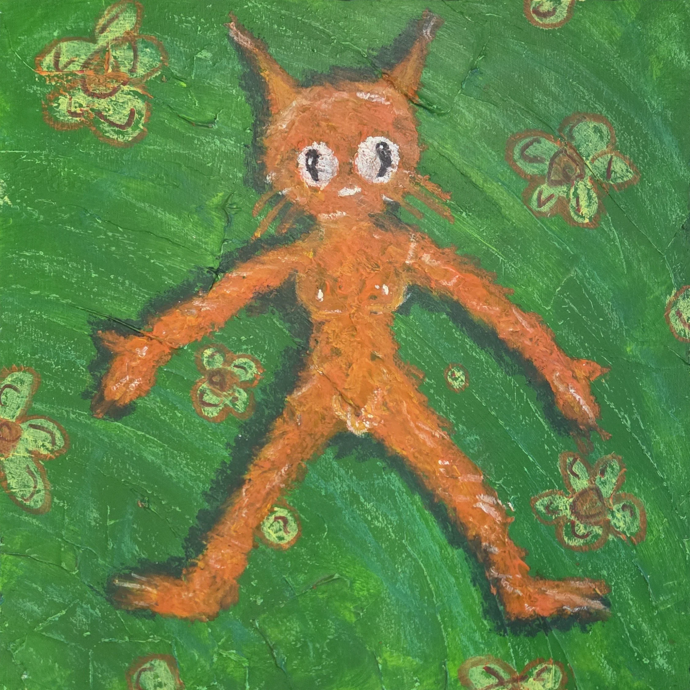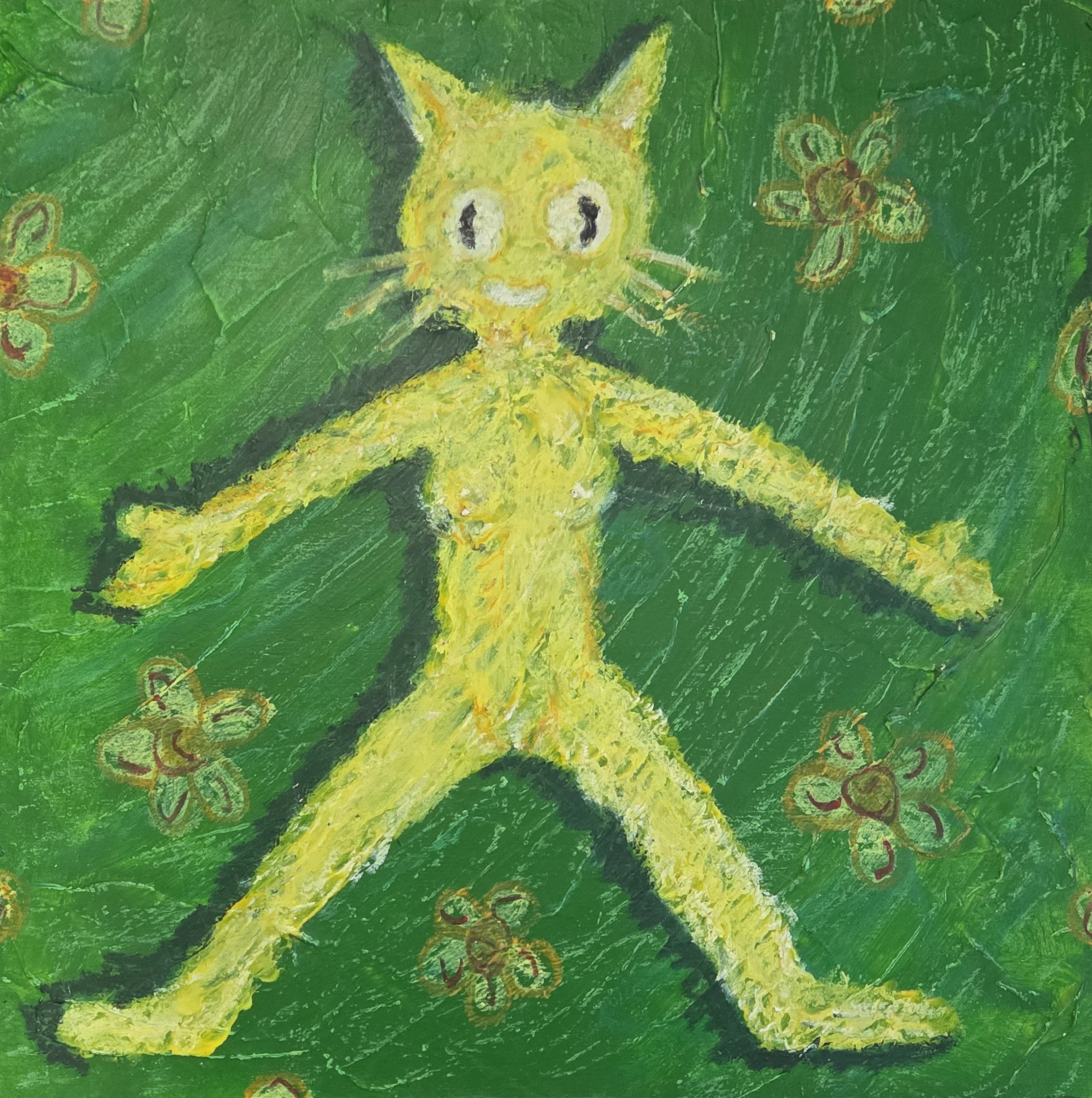 (12” x 12”) 2025 Acrylic, oil, pastel and crayon on birch panel.