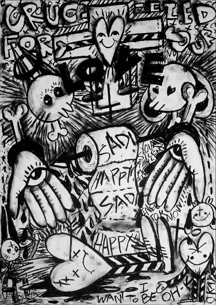 (23.4” x 16.5”) 2023 Acrylic paint and charcoal on paper